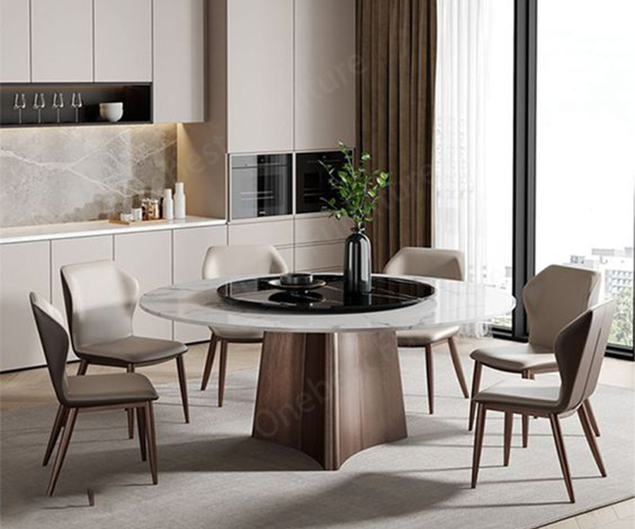 Choosing the right size is crucial and needs to be determined according to the number of households, dining habits and restaurant space. Generally speaking, the rectangular table is suitable for large families or families who often host film meals, while the circular table is more suitable for small families or couples who pursue a romantic atmosphere. The height of the meal is generally 75cm, and the height of the dining chair is 45cm to ensure dining comfort. At the same time, it is also necessary to consider the distance between the dining chair and the table and the space behind the dining chair to ensure that the dining is comfortable.